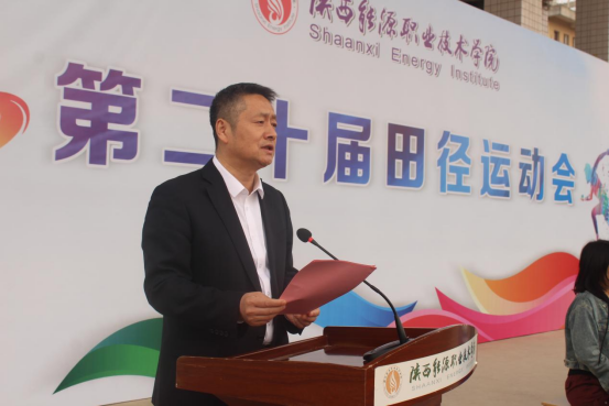 党委副书记任向明在咸阳校区宣布学校第二十届田径运动会开幕