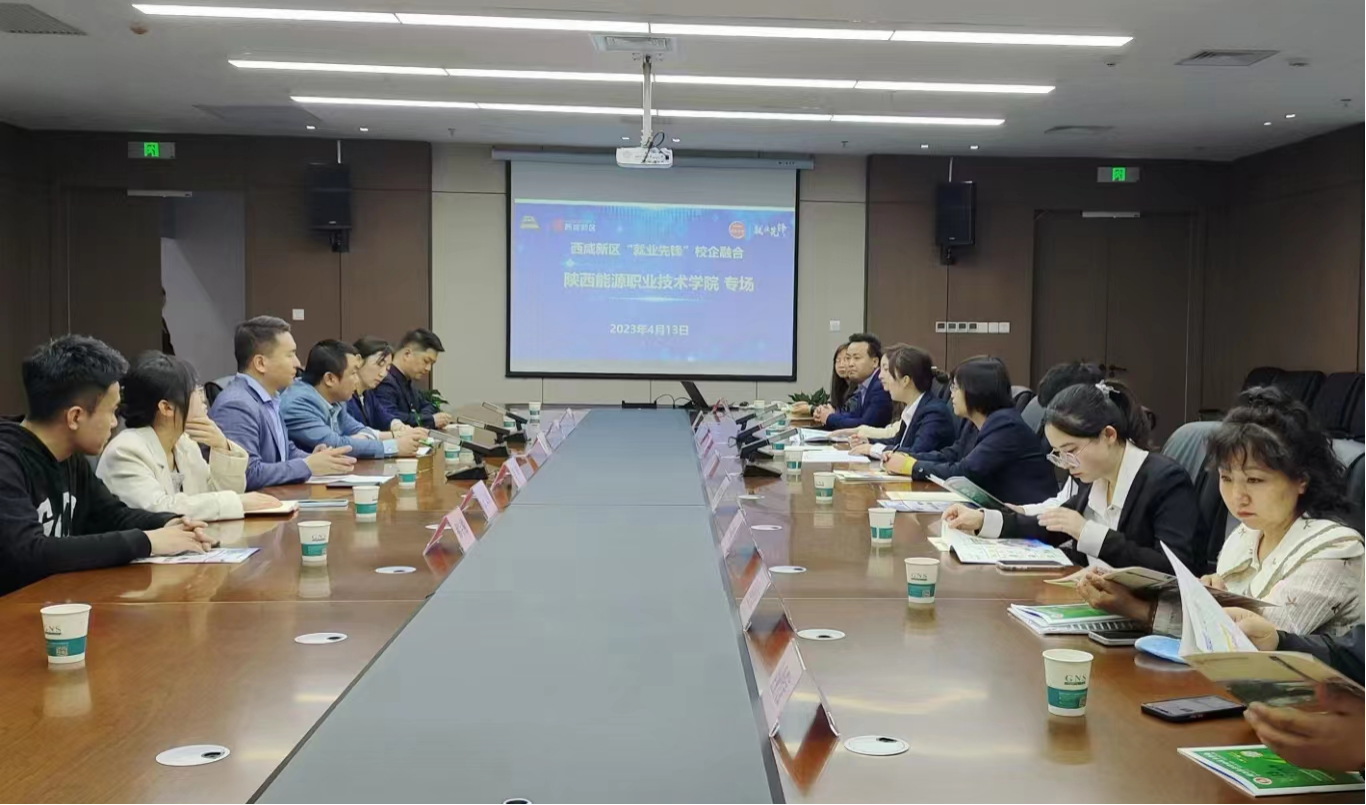 随后,在三层会议厅召开了西咸新区校企融合“访企拓岗”专场座谈交流会。于涛向秦创原各级领导给予校企供需促就业工作的大力支持表示感谢,并向企业代表详细介绍了学校校史、发展概况、校企合作、就业创业等内容。在与西咸新区沣东新城、隆基乐叶光伏、三一智能装备、联森医药等多家企业代表进行座谈过程中,校企双方从企业概况、发展规模、人才供需、岗位拓展、薪金待遇、专业设置、校企对接、合作培养、带生入企等方面进行了深入交流。