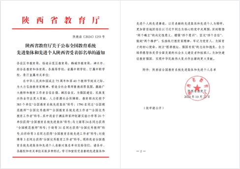近日,陕西省教育厅印发《关于公布全国教育系统先进集体和先进个人陕西省受表彰名单的通知》(陕教函〔2024〕1253号),我校教师魏頔荣获“全国模范教师”称号,是陕西省唯一入选全国模范教师称号的高职院校教师。