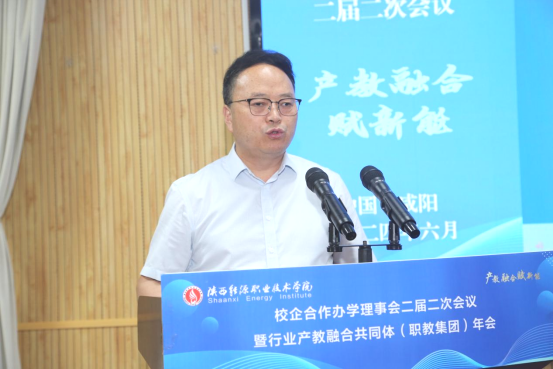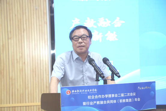 简军峰代表陕西省发改委(能源局)致辞,向长期以来关心、支持和推动陕西省能源事业发展的各单位表示感谢。希望继续秉承“校企互动、资源共享、工学交替、产教融合”思路,群策群力,落实习近平总书记对职业教育的指示精神,共同培养出更多高素质技术技能人才,为保障国家能源安全和推动陕西经济社会高质量发展作出应有贡献。