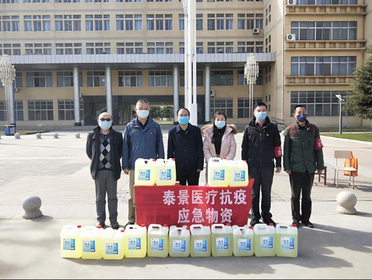 3月10日,我校2005级医药营销班毕业校友王菲代表陕西泰景医疗器械有限公司向我校捐赠价值近3000元的酒精,84消毒液等抗疫物资,并为保卫处工作人员赠送喷雾式皮肤消毒液。党委副书记郭开龙代表学校接受捐赠。