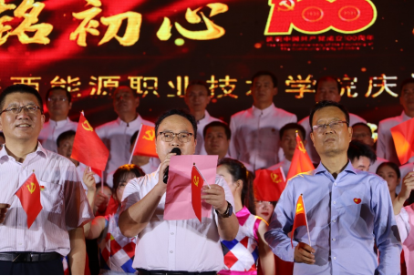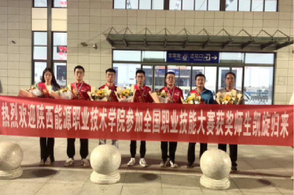 晚上九点,获奖师生抵达咸阳秦都站,学校实践教学管理处副处长杨勇与煤化产业学院一行接站人员在高铁站为获奖师生佩戴绶带、送上鲜花。随后,获奖师生抵达学校建党100周年文艺晚会现场,由校长朱忠军宣布赛项代表队的获奖消息,并对代表队表示祝贺,全体校领导和全校师生见证了这一光荣时刻。