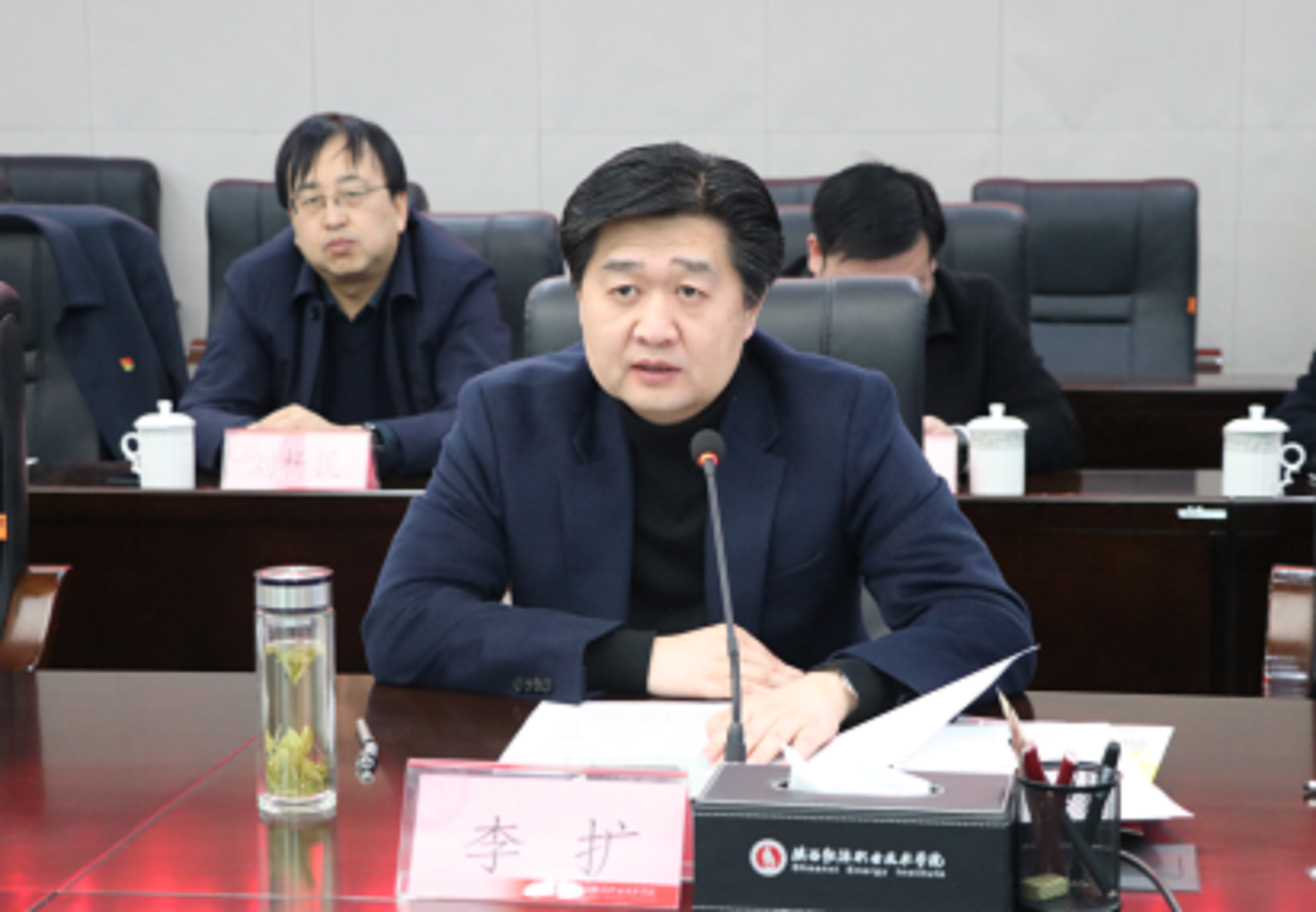 李扩向陕能院长期以来对白水发展的关心和支持表示感谢,并从历史文化、民风民俗、经济发展等方面介绍了白水县相关情况及考察调研目的。他讲到,白水县地处渭北黑腰带腹地,煤炭储量29.3亿吨,近年来,积极响应国家战略决策,坚持能源清洁化、低碳化、高效化发展,聚力打造“苹果、文旅、康养、白酒、能源、制造业”六大产业板块,各项发展已进入了快车道。白水县职业中专、蒲白矿务局、白水县协和医院等单位也与陕能院有着长期良好的项目合作基础。希望能够在职业教育发展、能源清洁利用、中医康养医护人才培养方面开展深度合作,全面推进县域经济高质量发展再上新台阶。
