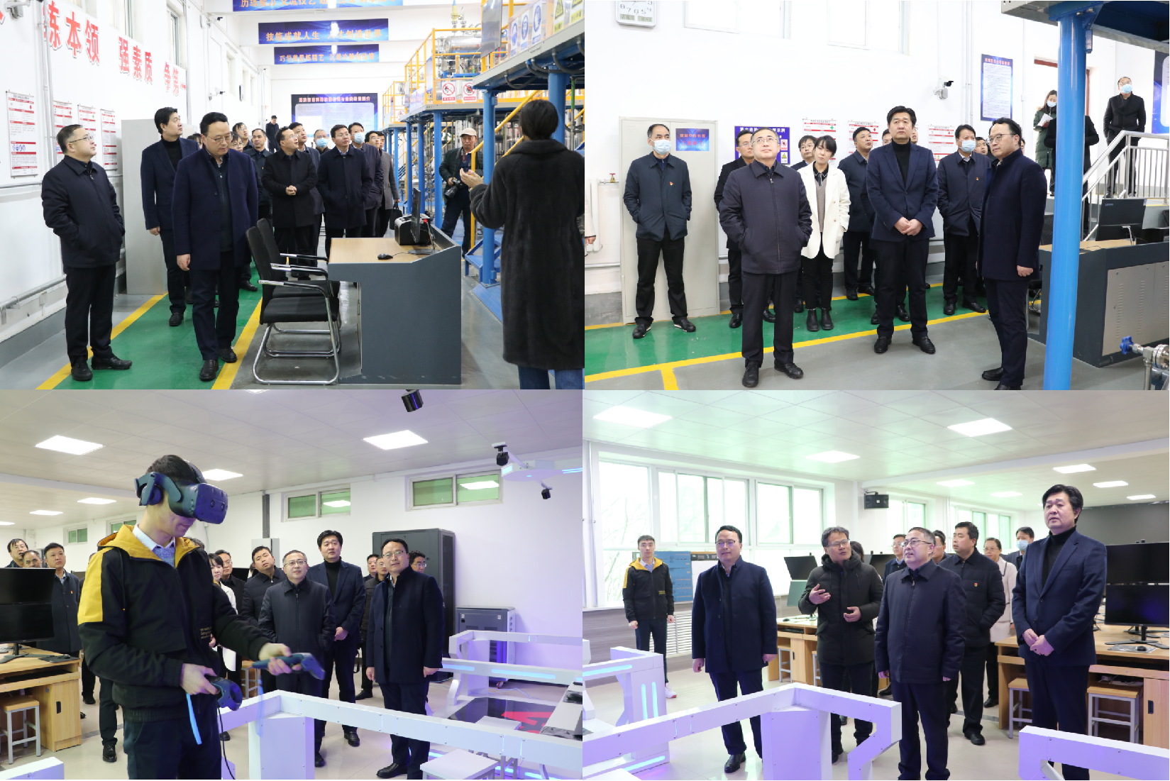 在校党委副书记、校长朱忠军等同志的陪同下,雷江声一行先行参观了我校地质陈列室、模拟矿井、煤炭清洁利用实训室、化工VR实训室、地质灾害仿真实训室、罗克韦尔智控协同创新中心、煤化工仿真工厂、数字化解剖实训室、传统医学实训室、针灸推拿实训室、康复疗法实训室、美容技术实训室等地,通过多视角位、多点位地讲解介绍,了解学校的教学环境、实训条件、师资能力和培训水平。