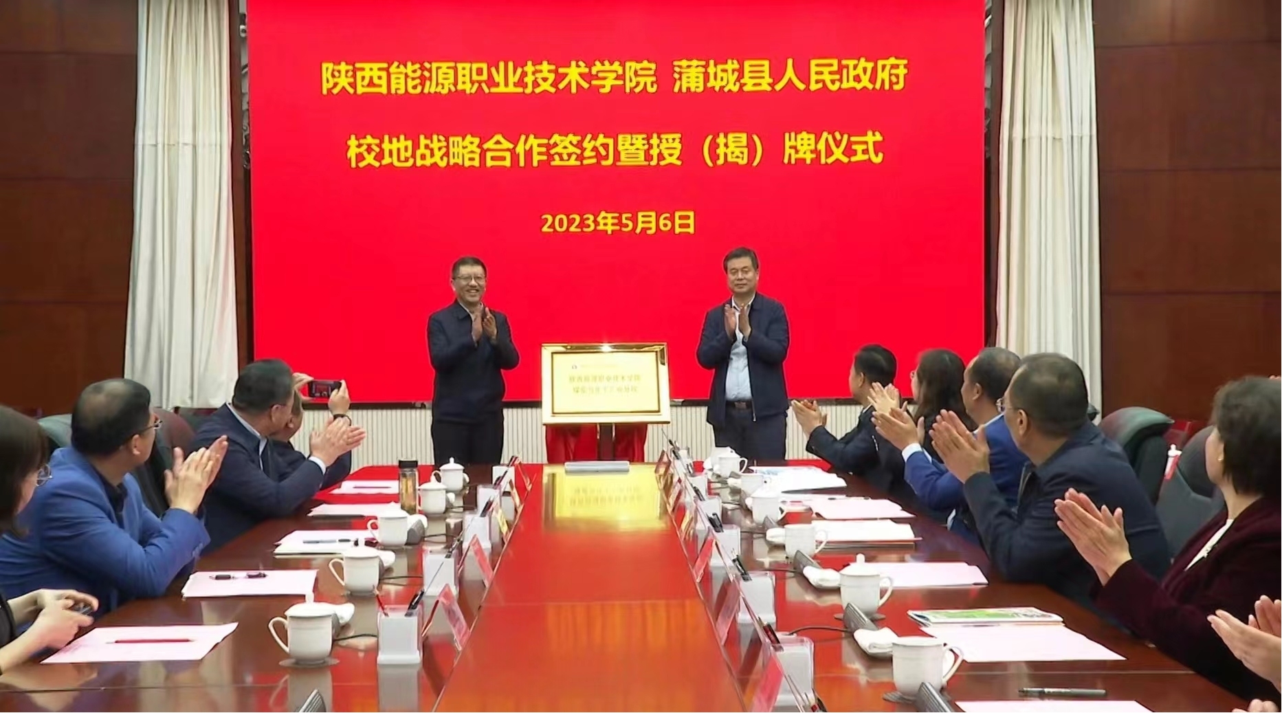 5月6日,我校党委书记刘予东、校长朱忠军前往渭南市蒲城县开展访企拓岗参观调研暨校地合作揭(授)牌仪式。党政办、招生就业处(校企合作处)、煤炭与化工产业学院负责人陪同前往。