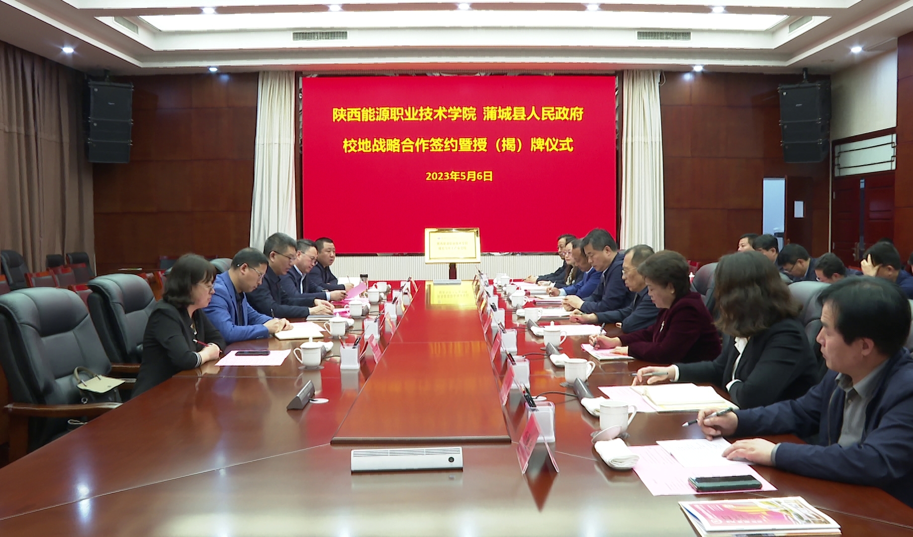 随后,前往蒲城县委会议室参加“校地合作战略签约暨授(揭)牌仪式”。蒲城县委常委常务副县长陈改萍、县委组织部部长李世峰、发改局、财政局、人社局、教育局、县委编办、职教中心负责人及相关同志一同参会。会议由蒲城县委常委宣传部部长宋小娜主持。