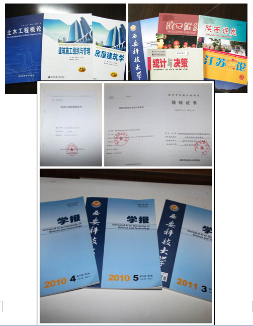 近年来,本专业教师主(参)编了《建筑施工组织与管理》、《建筑施工技术》、《土木工程概论》、《建筑材料》、《房屋建筑学》、《建筑结构》等全国高职高专规划教材;主持(参与)了《微型桩单桩竖向承载力时效问题的试验研究》、《茶镇隧道动态监测与反馈技术研究的子项目:隧道监测数据处理及判别确定》等多项教科研课题项目;先后在《统计与决策》、《西安科技大学学报》、《路基工程》等刊物上公开发表学术论文20余篇,其中核心期刊5篇,被CSSCI检索一篇。建筑工程技术专业核心课程中,建设《建筑施工技术》、《建筑结构》两门网络资源共享课程。
