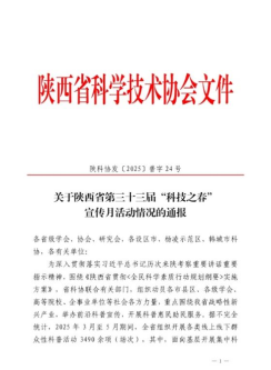 近日,陕西省科学技术协会发布了关于第三十三届“科技之春”宣传月活动情况的通报,我校作为本届全省唯一一所入选的高职院校,已连续4年获表彰,充分彰显了我校在科技创新和科普宣传方面的持续影响力和突出成绩。