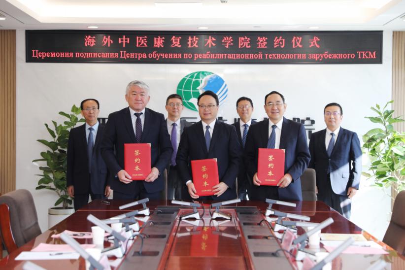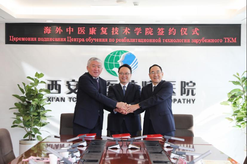 贯彻落实教育部“随企出海”政策,积极响应第二届中国—中亚峰会合作倡议,促进学校产教融合高质量发展,9月24日上午,我校与西安中医脑病医院、中国—哈萨克斯坦传统医学中心三方代表在西安正式签署合作协议,共建“陕西能源职业技术学院海外中医康复技术学院”。我校党委副书记、校长朱忠军,西安中医脑病医院党委书记、院长宋虎杰,中国—哈萨克斯坦传统医学中心负责人叶尔兰及我校相关职能部门负责人出席签约仪式。