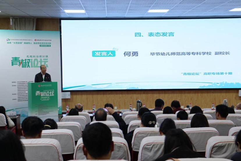 随后,“青椒论坛”高职专场第十一期承办院校毕节幼儿师范高等专科学校党委委员、副校长何勇进行“青椒论坛”高职专场旗帜交接,并表态发言。