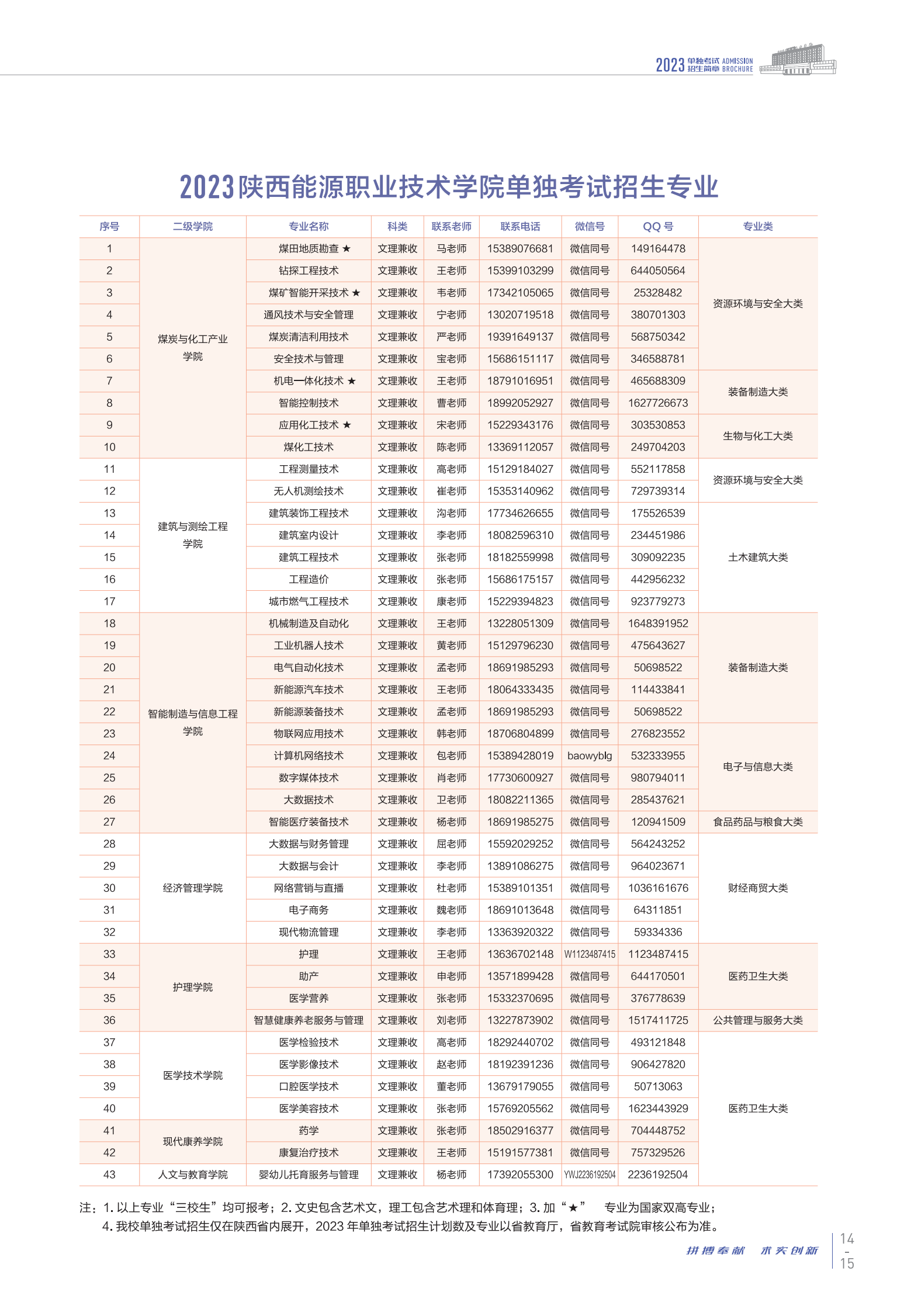 陕西能源职业技术学院2023年单独考试招生计划