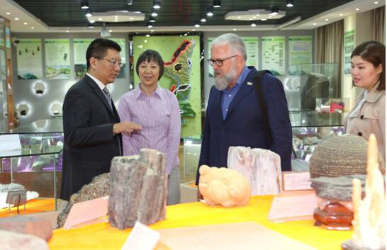 最后,迈克尔森比勒先生(Michael Sendbluehler)一行在刘予东等陪同下参观了学院模拟矿井、建筑模型室、地质陈列室。