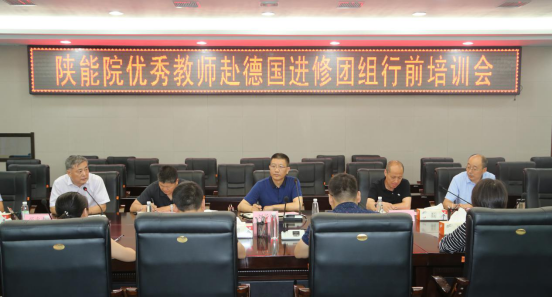 7月10日下午,优秀教师赴德国进修行前培训会在办公楼第三会议室召开,陕西省教育厅国际处处长孙建宁、校长刘予东、副校长赵龙波、外事办主任任向明、人事处处长乐永孝及赴德进修团教师参加会议,会议由任向明主持。