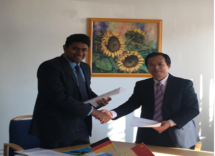 令狐培选书记(右)与德国国际教育学院院长克里施纳•那格莱茵(左)