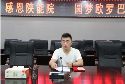 杜乐同学在报告中回顾了自己刻苦学习,不断积累,不懈努力,最终赢得欧洲留学机会的心路历程,他深情的说道:“我从小就有一个出国梦,当年高考失利来到陕能院也深感失望,真没想到学院能给我提供这样一个宝贵的机会,圆了我的留学梦,我真心感谢学院和老师们为我做的一切。”