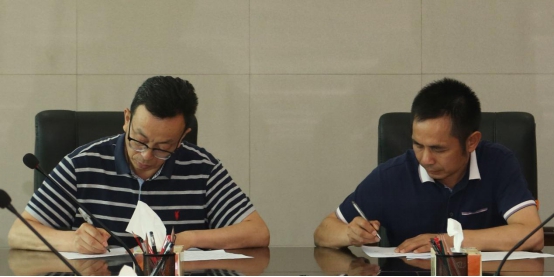 刘拥军与卢勇江、于秋玲分别签订《校企合作协议》《订单培养两个协议》;并为我校赠送“人才培养创新路 校企合作谋共赢”和“厚德育人 泽流及远”锦旗。