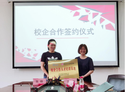 随后,于涛代表学校与企业代表张晓签订了“校企合作协议”。张晓代表企业向我校授牌“校企合作人才培训基地”。